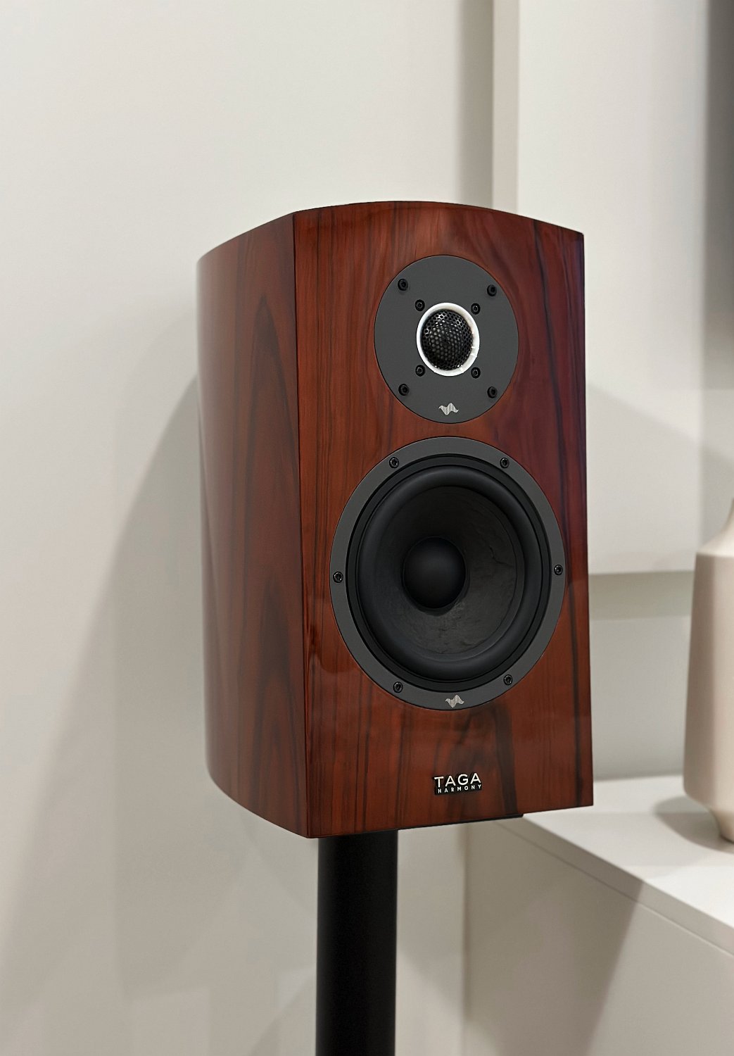 Kõlar on viimistletud vastupidava naturaalse puiduspooniga, millele on kantud kas läikiv või matt viimistlus.