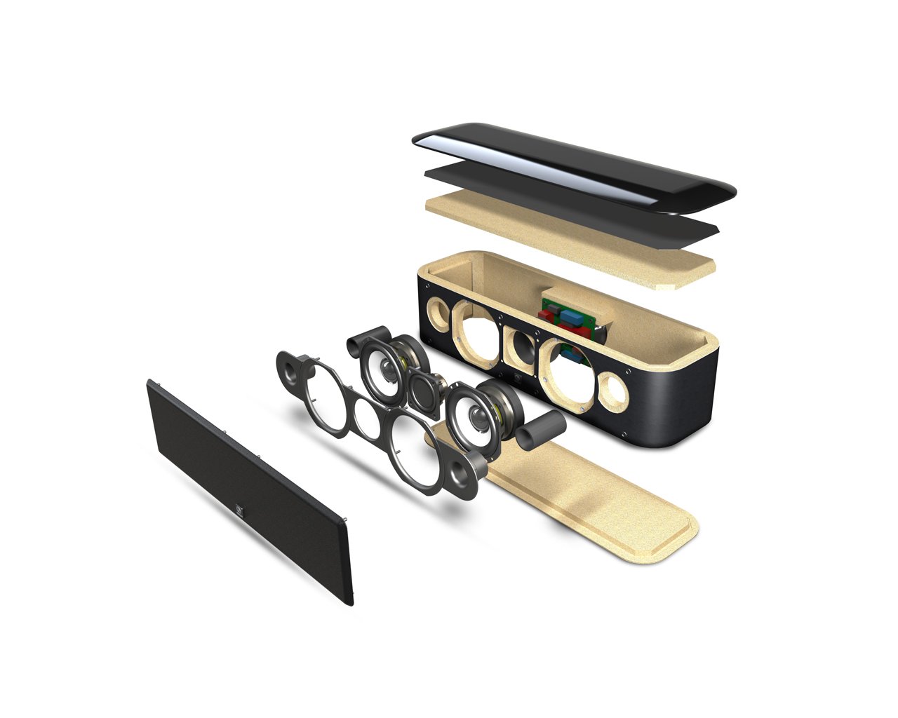 ● Kõlareid valmistatakse musta läikiva viimistlusega või kaetuna pähklivineeriga, esikülg kaunistatud nahaga